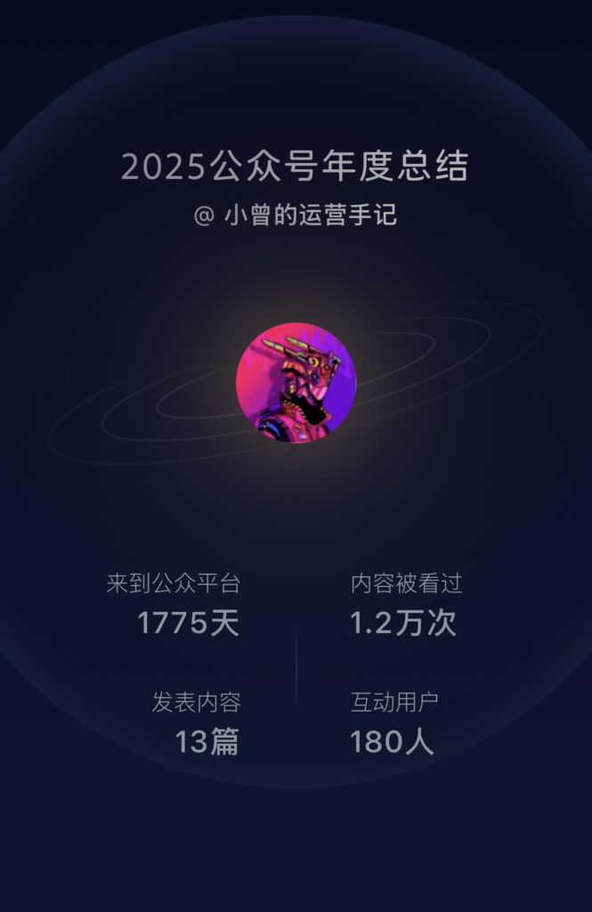 今天微信公众号在公众号助手App上发布了2025年的回顾,简单的看了下,今年写的文章才13篇,这就是年更博主吧!